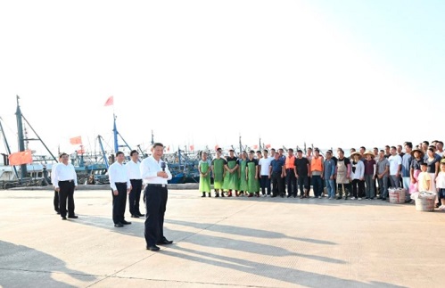 10月15日至16日,中共中央总书记、国家主席、中央军委主席习近平在福建考察。这是15日下午,习近平在漳州市东山县陈城镇澳角村考察时,同渔民们亲切交流。新华社记者 谢环驰摄