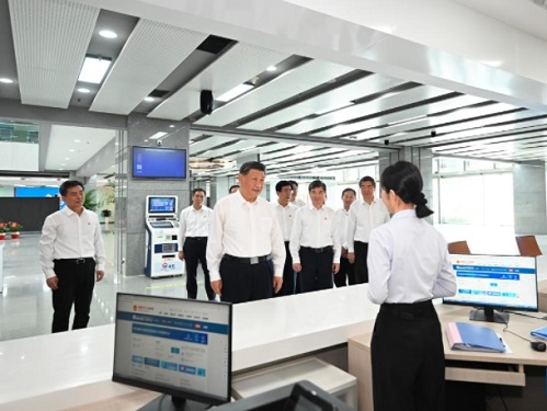 10月15日至16日,中共中央总书记、国家主席、中央军委主席习近平在福建考察。这是16日上午,习近平在中国(福建)自由贸易试验区厦门片区考察时,同综合服务大厅窗口工作人员亲切交流。新华社记者 燕 雁摄
