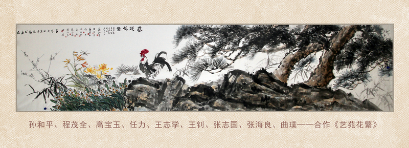 孙和平、程茂全、高宝玉、任力、王志学、王钊、张志国、张海良、曲璞合作作品《艺苑花繁》