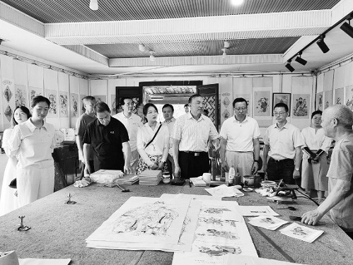 视察团一行在绵竹年画村详细了解非遗绵竹年画的保护传承情况。