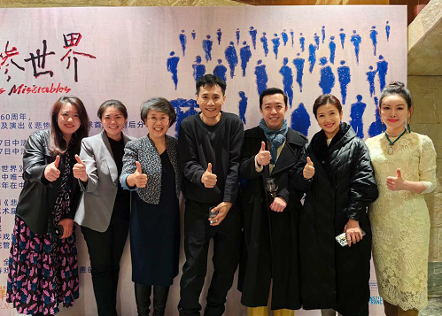 阚凌云(右一)与央华版《悲惨世界》支持单位北京市文联领导和部分主创人员等在一起