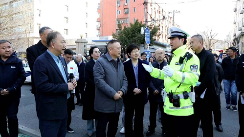 3月13日,张家明、燕瑛副主席带领“校园周边交通综合治理”议题监督小组到东城区北京第一七一中学调研,实地察看校园周边交通情况