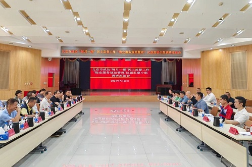 7月23日,市政协“每月一题”民主监督工作“物业服务规范管理”议题监督小组赴朝阳区,实地调研丽都水岸小区物业管理服务有关情况,并与市住房城乡建设委、朝阳区和属地街道等有关同志座谈交流。