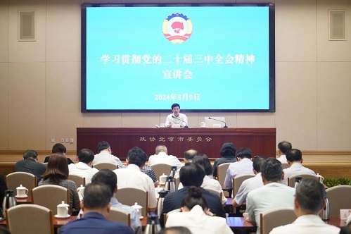 魏小东表示,各界委员和机关全体党员干部要以实际行动全面贯彻落实全会精神,全力以赴投身改革实践、助力《决定》落实,与党委政府一道,坚定不移实现中共中央改革决策部署。要推动全会精神学习贯彻持续走深走实,实现委员和机关干部学习全覆盖,以委员学习带动各界群众学习。紧扣全市重大改革举措实施,瞄准改革中的“硬骨头”,深入调查研究,积极建言献策、广泛凝心聚力,助力开创首都全面深化改革新局面。全面贯彻《决定》对政协工作的新部署新要求,扎实推进专门协商机构建设,推动政协事业高质量发展迈出新步伐。
