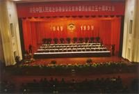 五十年前的金秋时节,中国人民政治协商会议第一届全体会议在北平召开。这次会议代行全国人民代表大会的职权,通过了一系列法案和决议,宣告了中华人民共和国的成立,并把北京定为新中国的首都。这是一个具有划时代意义的历史事件,它标志着“占人类总数四分之一的中国人从此站立起来了”,标志着古都北京从此掀开了历史发展的新篇章。